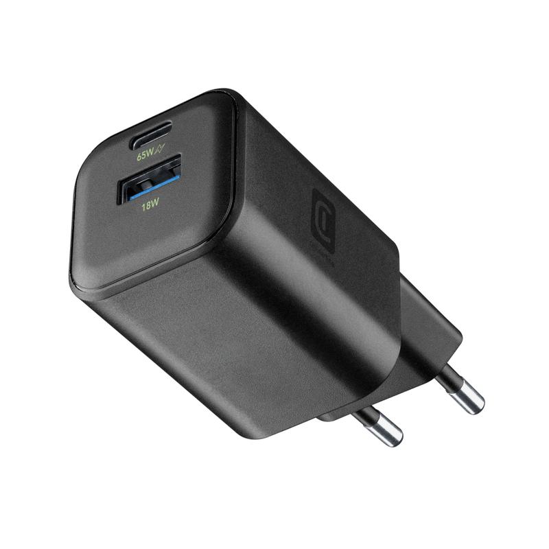Cellularline - Caricabatterie da rete GAN 65W con 2 porte USB-C e USB-A