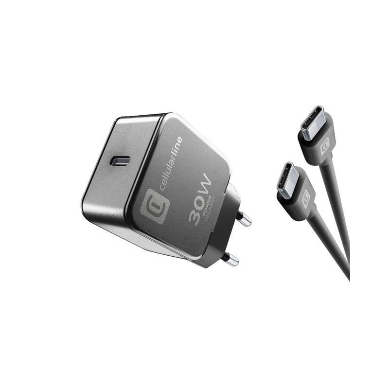 Cellularline - Kit Caricabatteria da rete USB-C Power Delivery 30W - Nero