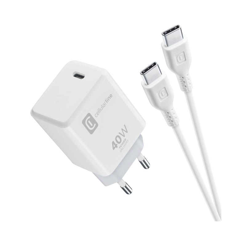 Cellularline - Kit Caricabatterie da Rete USB-C 40W + Cavo 100cm