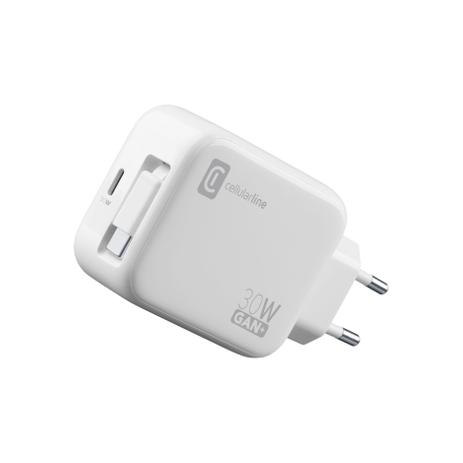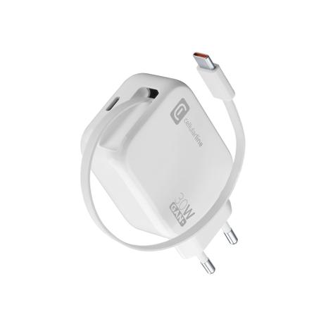 Cellularline - Caricabatterie da rete 30W con cavo retrattile USB-C e porta USB-C
