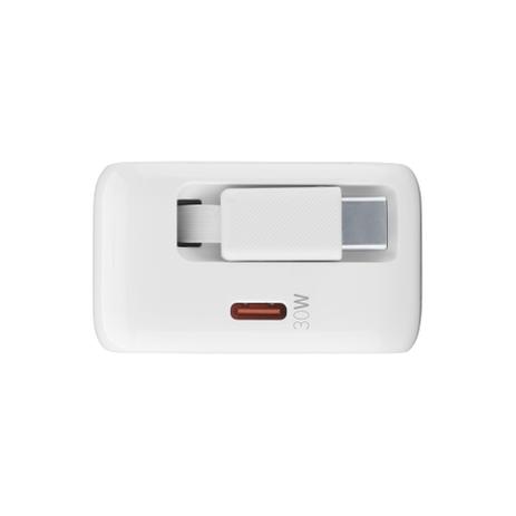 Il caricabatterie da rete 30W con cavo retrattile è la soluzione perfetta per ricaricare in modo rapido, sicuro ed efficiente tutti i dispositivi compatibili fino a 30W. Dotato di tecnologia GaN (nitruro di gallio), offre una ricarica potente riducendo il calore generato, permettendo così un design più compatto e leggero, ideale per viaggiare o per l’uso quotidiano. Questo caricabatterie è fornito di una porta USB-C da 30W Power Delivery e di un cavo USB-C retrattile integrato da 90 cm, anch’esso con supporto alla ricarica rapida PD 30W. È possibile ricaricare due dispositivi contemporaneamente, ottimizzando tempo e spazio senza sacrificare la performance. Progettato per garantire la massima sicurezza, è dotato di protezione da sovraccarichi e cortocircuiti e di un sistema intelligente di ottimizzazione della ricarica, che preserva la salute della batteria dei tuoi dispositivi. Compatibile con tutti i modelli di smartphone e tablet, il caricabatterie da rete 30W con cavo retrattile unisce tecnologia avanzata, praticità e compattezza in un unico prodotto.
