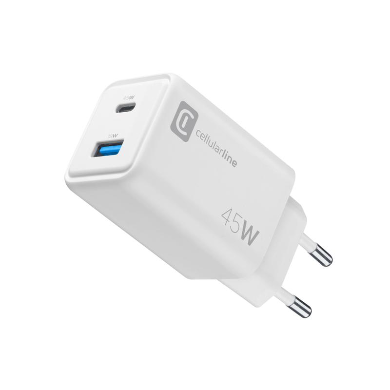 Cellularline - Caricabatteria da rete Dual 45W USB-C USB-A PD - Bianco