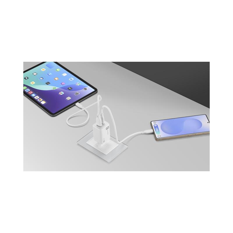 Caricabatterie da rete ultra-performante con doppia porta e output massimo di 45W, progettato per garantire la massima efficienza in un formato incredibilmente compatto. La porta USB-C da 45W assicura una ricarica ultra-rapida per tutti i dispositivi, ed è dotata di tecnologia PPS per supportare anche la ricarica Samsung Super Fast Charging 2.0. La porta USB-A da 18W è perfetta per una ricarica affidabile e veloce con qualsiasi brand. Compatto e versatile, permette di alimentare smartphone, tablet e laptop con prestazioni elevate, anche in simultanea. Grazie all’innovativa tecnologia GaN+, combina potenza e prestazioni elevate in un design ridotto, ideale per l’uso quotidiano e in mobilità.
