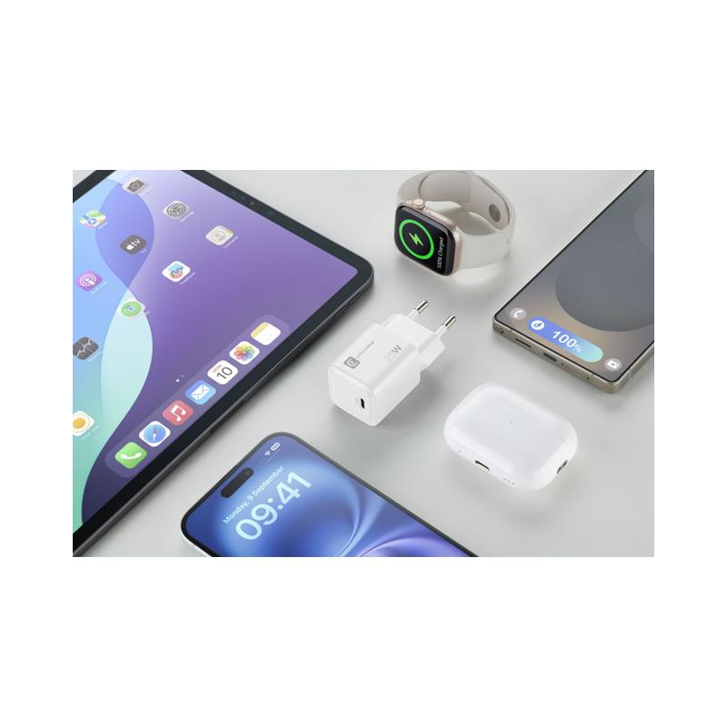 Caricabatterie da rete ultra-performante da 25W con porta USB-C, compatibile con tutti i brand. Progettato per garantire la massima efficienza, integra l’innovativa tecnologia GaN+ che assicura alte prestazioni in un design estremamente compatto. Perfetto per ricaricare smartphone e tablet in modo rapido e sicuro, è dotato di adattatore automatico per prese da 110V a 240V e ottimizza la ricarica per proteggere la batteria. Ideale per l’uso quotidiano e in mobilità.