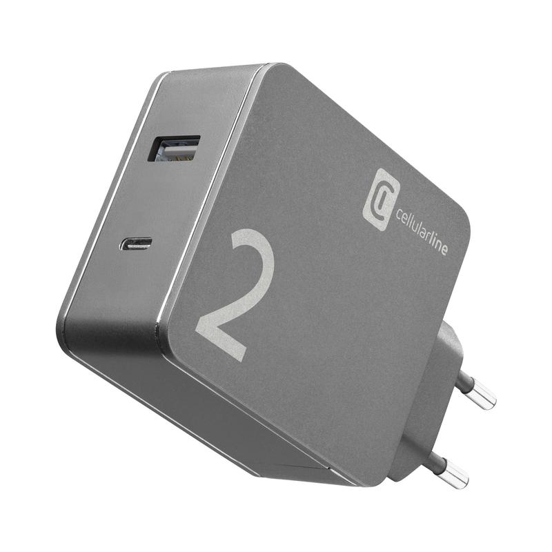 Cellularline - Caricabatterie da rete USB-C 2 porte 42W nero