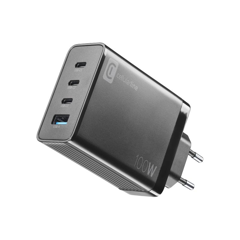 Cellularline - Caricabatterie da rete 100W con 4 porte - Nero