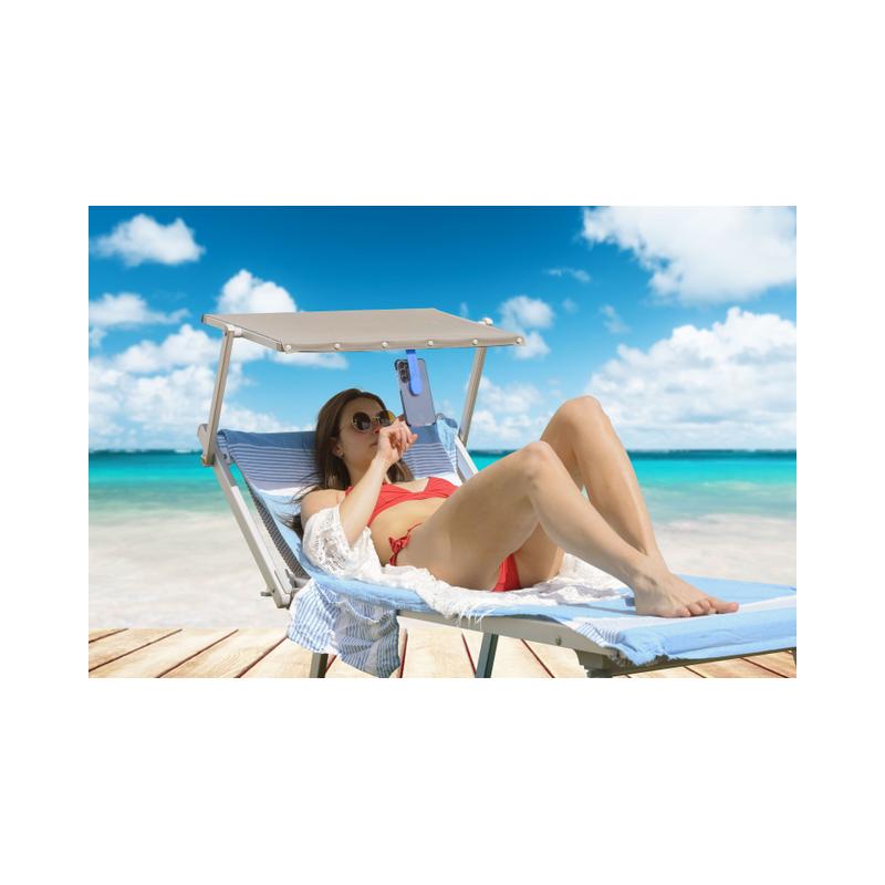 BELLAVITA è un supporto che rende più confortevole l'utilizzo dello smartphone mentre si sta comodamente distesi sul lettino prendisole. È un supporto pratico e leggero, ma allo stesso tempo risulta essere sicuro e stabile. È adatto per quasi la totalità dei lettini prendisole.
