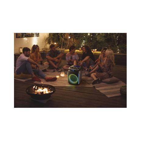 SOUND BOX è la cassa speaker perfetta per i party outdoor, grazie ai suoi 40 WATT di potenza e alle luci RGB che creano un'atmosfera unica. Con la tecnologia Bluetooth, puoi riprodurre la tua musica senza fili e goderti un ascolto potente. La tecnologia True Wireless ti consente di associare due SOUND BOX insieme per un suono stereo immersivo. La pratica maniglia rende questo speaker facile da portare ovunque, permettendoti di ascoltare la tua musica preferita anche fuori casa. Con un'autonomia di fino a 5 ore di playtime, potrai goderti la tua playlist senza interruzioni. Le luci RGB si sincronizzano al ritmo della musica, offrendoti uno spettacolo dinamico che ti farà ballare ovunque tu sia. Il controller integrato ti permette di gestire facilmente tutte le funzioni dello speaker, inclusa la tecnologia TWS, il controllo della musica e delle luci RGB, il settaggio della voce e del suono e molto altro ancora.