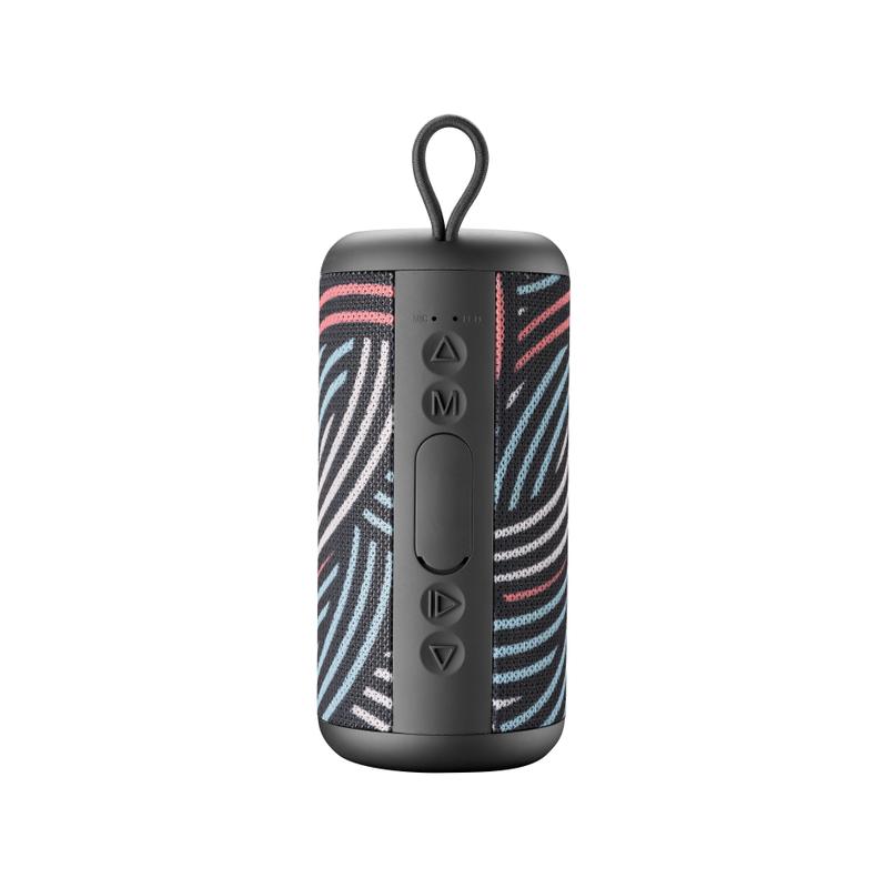 È un prodotto pensato per i giovani che hanno voglia di divertirsi ascoltando dell'ottima musica in compagnia e ha una compatibilità universale, può essere collegato a qualsiasi dispositivo. Con il suo design moderno e le SEI fantasie colore si adatta ad ogni stile. Inoltre, è un oggetto pratico e versatile grazie alle sue dimensioni, al peso leggero e al laccetto elastico garantisce un trasporto ottimale e la possibilità di agganciare la cassa allo zaino. Si caratterizza per una connessione bluetooth 5.0, ma funziona anche tramite tramite micro SD, usb key e cavo AUX. Ha una potenza di 5 watt, un periodo di play time e ricarica rispettivamente di 4 e 1.5 ore.