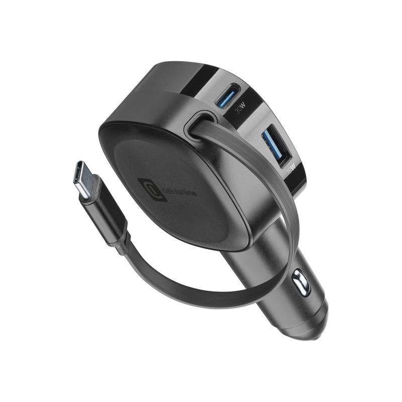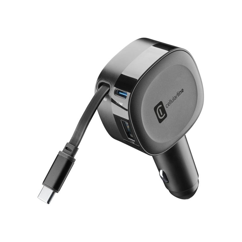 Cellularline - Caricabatterie da auto 60W con cavo retrattile