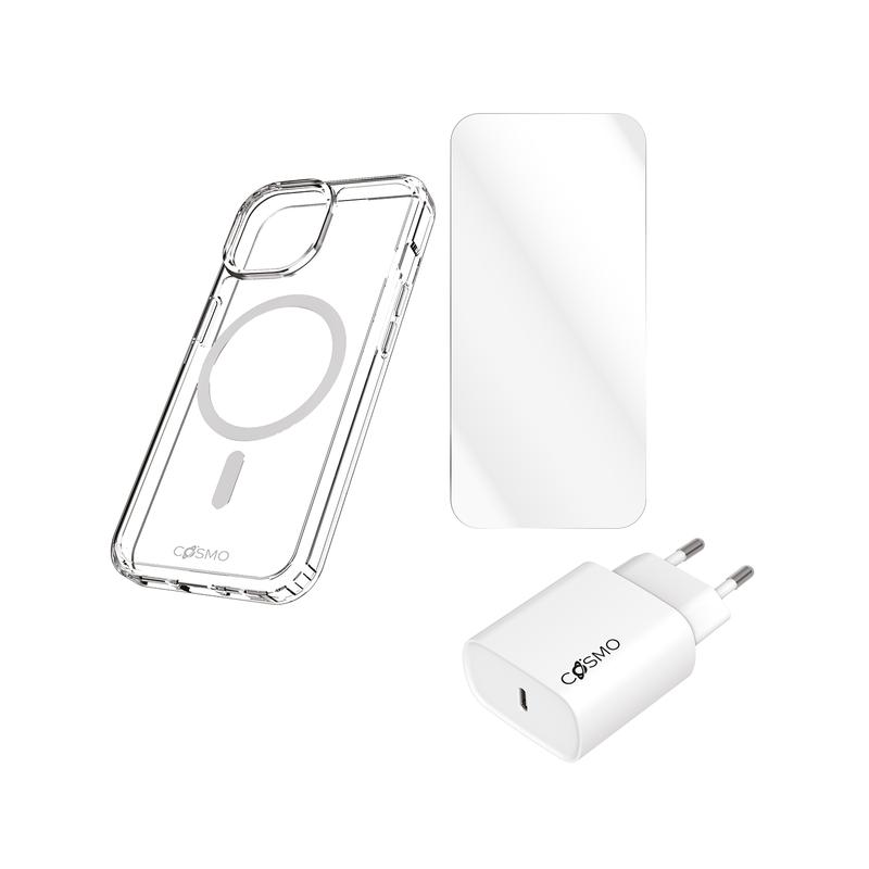 Il Kit accessori Cosmo offre un servizio completo all'utente finale includendo in un unico pacchetto: protezione a 360° e ricarica.