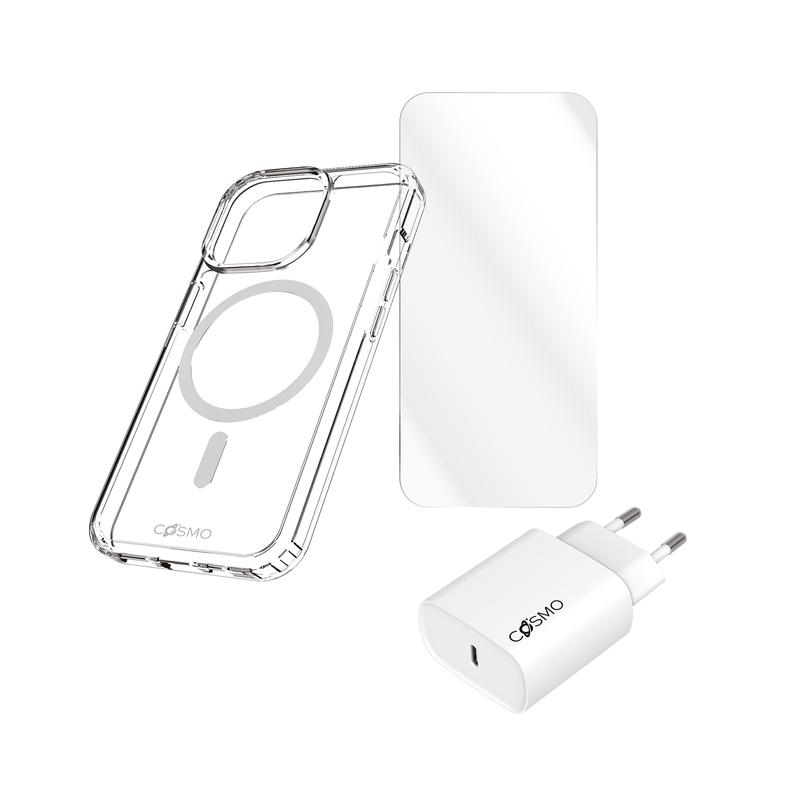 Il Kit accessori Cosmo offre un servizio completo all'utente finale includendo in un unico pacchetto: protezione a 360° e ricarica.