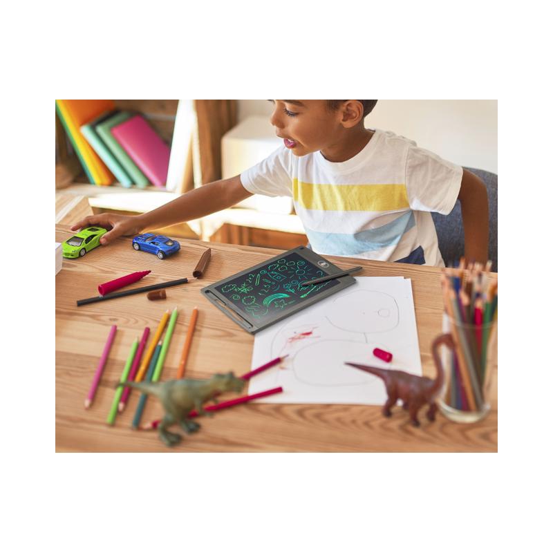 MAGIC ARTPAD è la tavoletta grafica con display LCD da 8.5’’, progettata per offrire un'esperienza di utilizzo sicura e pratica per i bambini. Il display colorato offre immagini vivide e chiare, mentre il pulsante di blocco conserva il contenuto visualizzato e il pulsante di cancellazione permette di resettare rapidamente il display. Inclusa nella confezione troviamo le batterie e una penna per disegnare e che può essere inserita in un apposito foro della tavoletta, il quale funge anche da supporto per facilitarne l’utilizzo. La protezione per gli occhi integrata riduce l'affaticamento visivo, rendendo la tavoletta adatta per periodi prolungati di utilizzo e ideale anche per bambini.