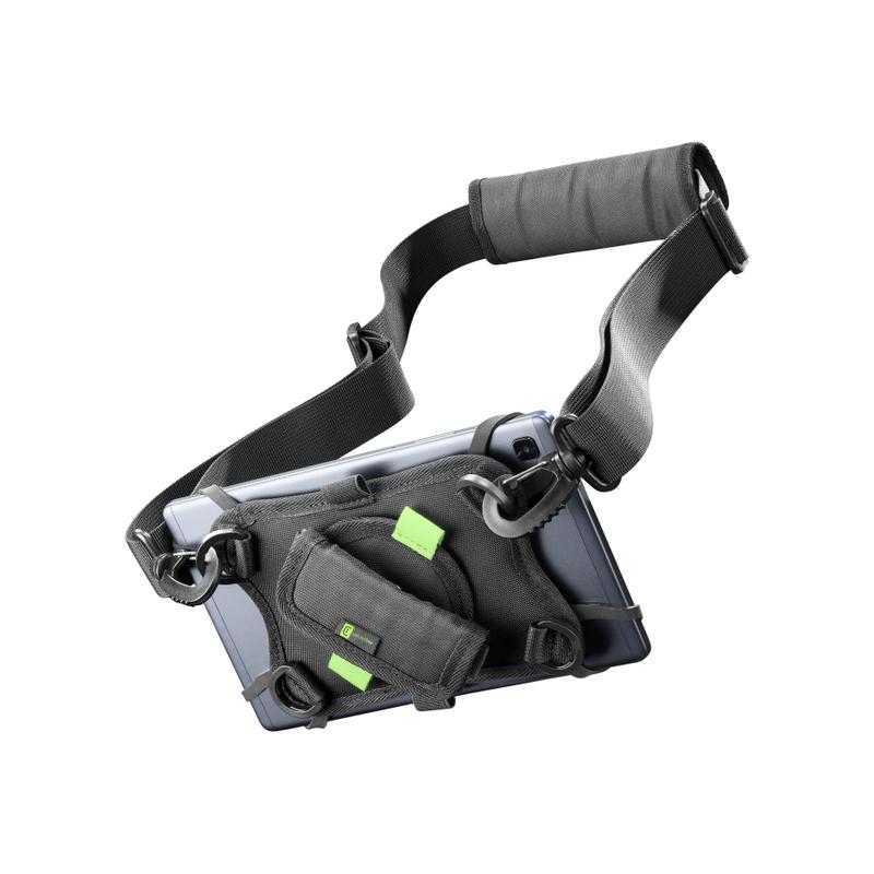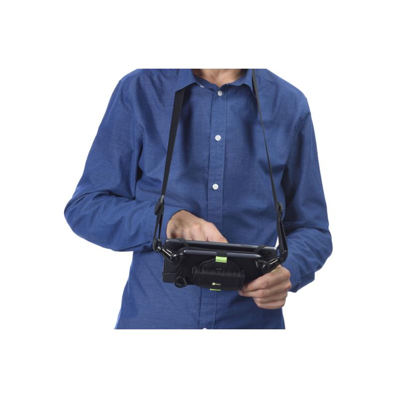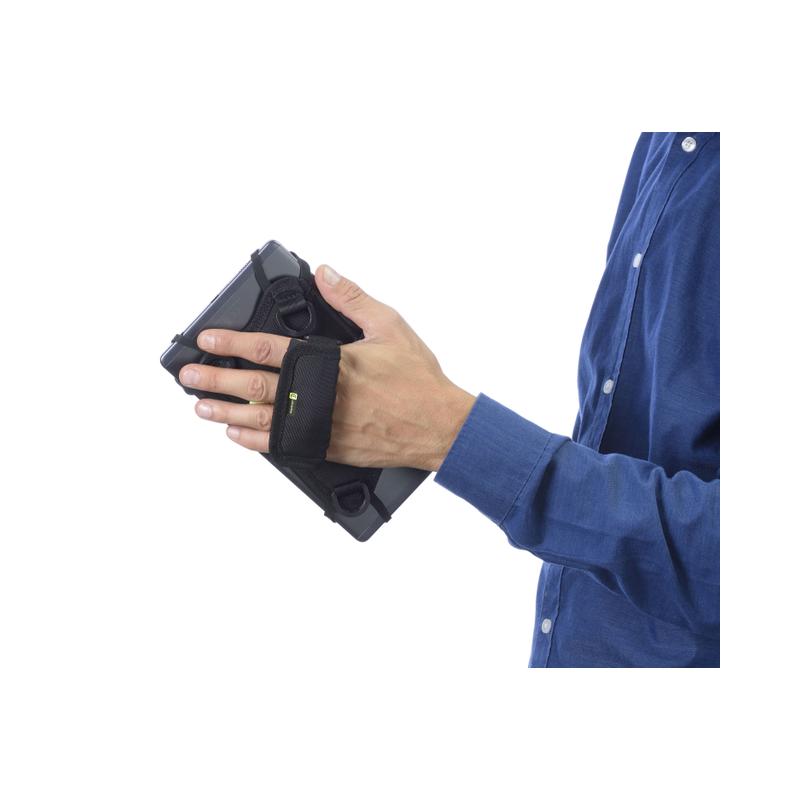 HANDLE CASE è la custodia universale per tablet studiata e realizzata per coloro che utilizzano il tablet come strumento da lavoro. La struttura della custodia, grazie ai quattro elastici in silicone, si adatta perfettamente alle dimensioni e alla forma di qualsiasi tablet. Handle Case può essere utilizzata anche quando il Tablet è protetto da una custodia posteriore. È inoltre dotata di una maniglia regolabile, che si adatta alle dimensioni della mano, e rotabile a 360° per garantire un utilizzo e una visualizzazione sia in verticale che in orizzontale. La due asole porta penna elastiche si adattano alle diverse dimensioni dei pennini per tablet. Grazie alla tracolla regolabile è possibile indossare il tablet al collo o a tracolla, lasciando libere le mani quando non lo si utilizza. La custodia è compatibile con tablet con display fino a 9’’ e con dimensioni massime pari a 22.5 x 15cm.