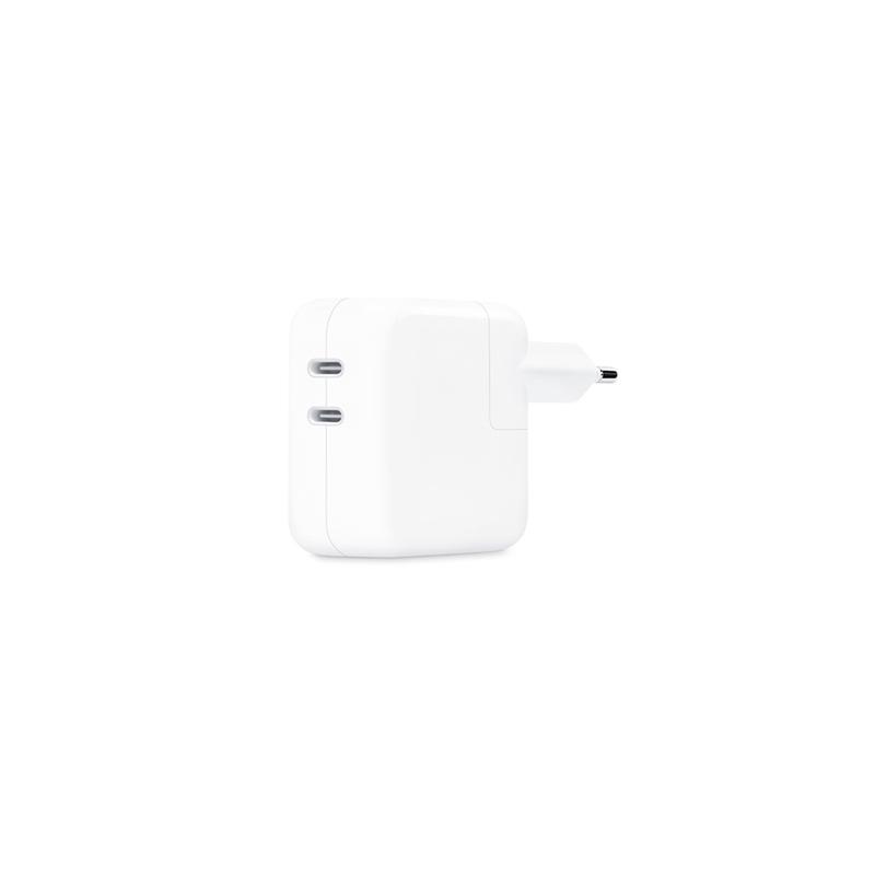 A casa, in ufficio o quando sei in giro, l’alimentatore da 35W a doppia porta USB‑C ti permette di ricaricare due dispositivi alla volta. È consigliato per il MacBook Air, ma puoi usarlo anche con iPhone, iPad, Apple Watch e AirPods.