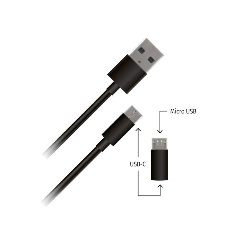 Cavo dati dotato di connettore USB to USB-C per ricaricare e trasferire dati su dispositivi dotati di porta USB-C. Inoltre, grazie all'adattatore Micro USB, permette di ricaricare e trasferire dati anche su dispositivi con porta Micro USB.