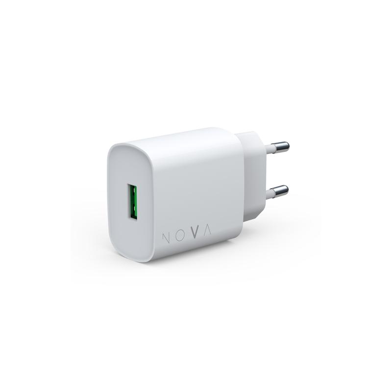 Caricabatteria da rete 18W con porta USB-A che garantisce la carica ottimale per gli smartphone e tablet compatibili con la tecnologia di carica QC 3.0.