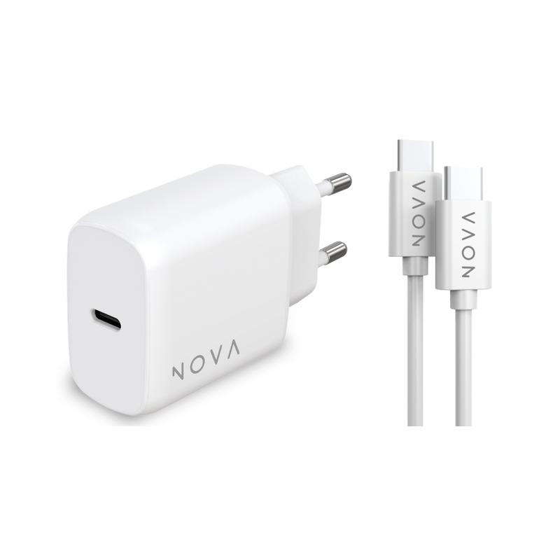 Nova - Caricabatteria da rete 25W 1 porta USB-C con cavo CtoC - Bianco