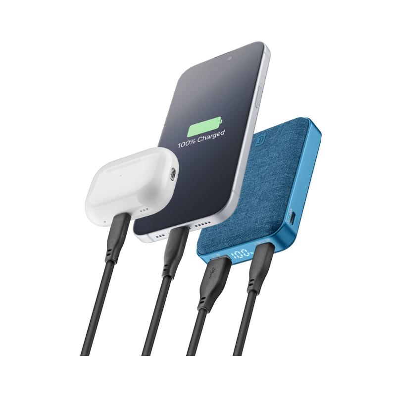 Il Power Bank GLAM 10000 è il caricabatterie portatile da 10000mAh che garantisce fino a 72 ore di ricarica extra per il tuo smartphone. Dotato di 3 porte: una USB-C con Power Delivery da 18W in input e 20W in output, una seconda porta USB-C output da 18W e una porta USB-A output da 18W, consente di caricare fino a tre dispositivi contemporaneamente in modo rapido ed efficiente. Il pratico LCD display ti permette di monitorare facilmente lo stato di carica residua del power bank. Il design elegante, con rivestimento in tessuto e doppie finiture premium, offre un tocco di sofisticatezza e praticità. Power Bank GLAM 10000 è la soluzione ideale per chi cerca un power bank potente, elegante e funzionale, perfetto per accompagnarti nelle giornate più intense