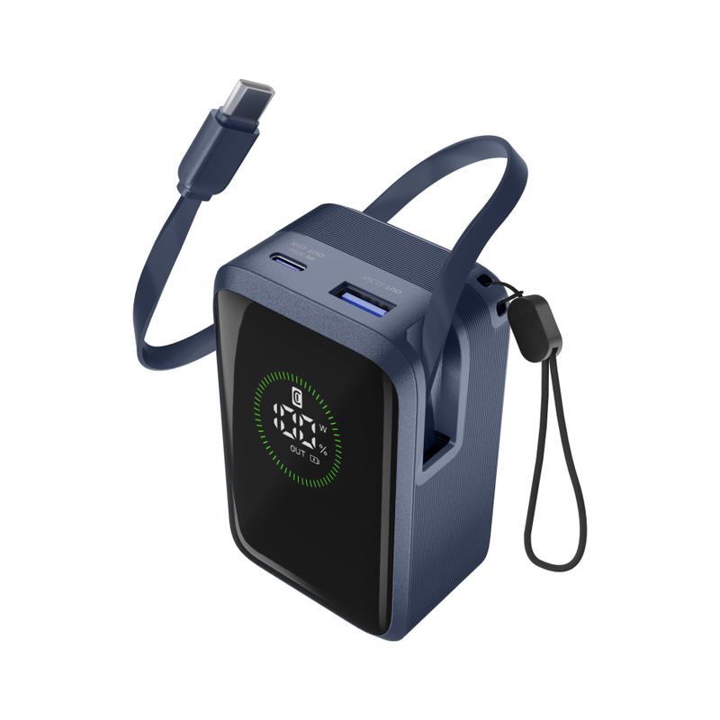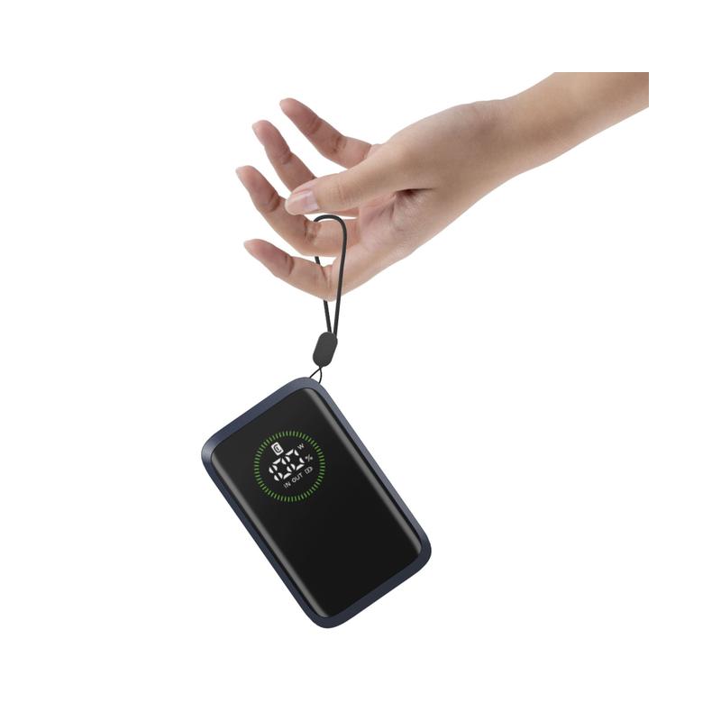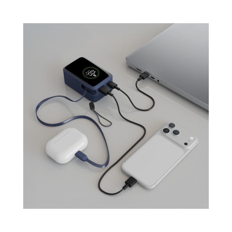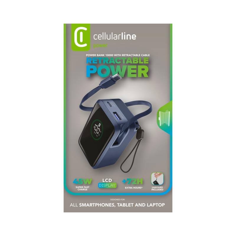 Power Bank Roller 10.000 è la soluzione ideale per chi cerca potenza e praticità in un unico dispositivo. Con una capacità di 10.000 mAh e output fino a 45W, garantisce fino a 72 ore di ricarica extra. Dotato di cavo USB-C retrattile integrato, una porta USB-C (30W in ingresso / 45W in uscita) e una porta USB-A fino a 22.5W, permette la ricarica simultanea di tre dispositivi. Il display LCD integrato consente di controllare in tempo reale il livello di carica e la potenza erogata. Compatto e portatile, è perfetto per smartphone, tablet e laptop. Il laccio incluso ne facilita il trasporto ovunque tu sia.