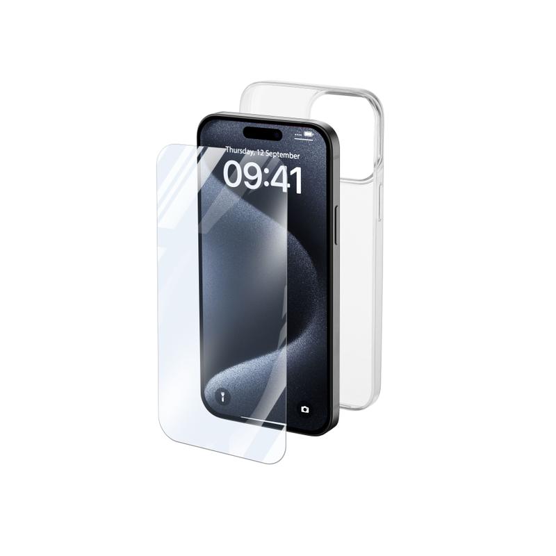 Cellularline - Protection Kit: Custodia + Vetro per iPhone 15 Pro
