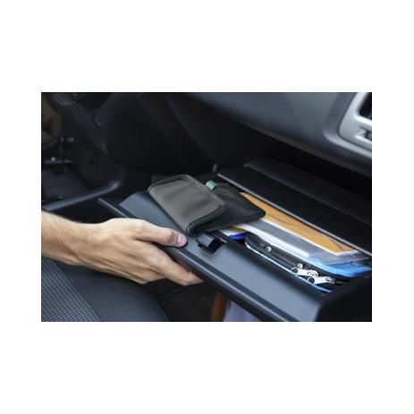 SAFETY POUCH è la custodia perfetta per chi desidera proteggere i propri dispositivi elettronici da accessi non autorizzati. Grazie alla schermatura RFID, blocca efficacemente i segnali di smart keys, Telepass e altri dispositivi di telepedaggio simili (es. UnipolMove, MooneyGo). Il design compatto e sottile consente di riporla comodamente nel vano portaoggetti dell’auto, mentre la chiusura in velcro garantisce una protezione sicura. Realizzata con materiali durevoli e anti-usura, è anche incredibilmente leggera e dal look minimalista. Una soluzione funzionale, discreta ed efficace per la sicurezza quotidiana.
