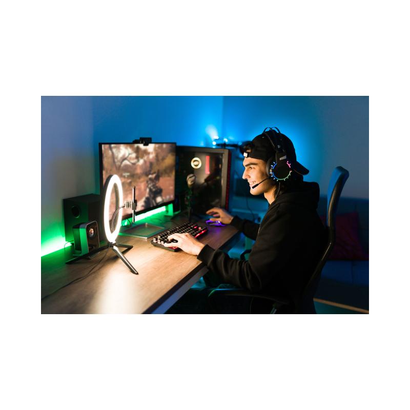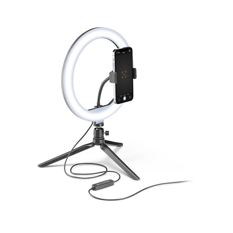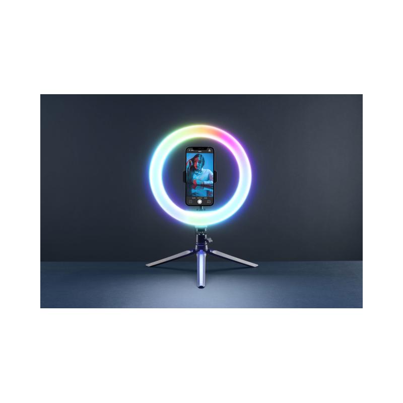 SELFIE RING MULTICOLOR è l'anello led RGB con treppiede, ideale per riprese video e selfie. L’anello led da 10’’ ha 18 modalità di illuminazione regolabili con telecomando ed è dotato di un supporto universale per smartphone ruotabile e flessibile per inquadrature a prova di regista!