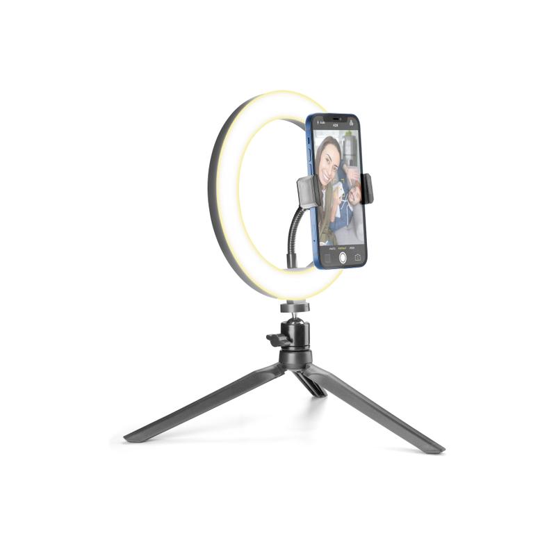 Per fare video e selfie, c'è SELFIE RING, il treppiede per smartphone con anello luminoso che si trasforma ovunque in un set! L'anello LED ha tre impostazioni di luce che possono essere accese con il telecomando, mentre il supporto può essere regolato e ruotato per girare scene come un regista.