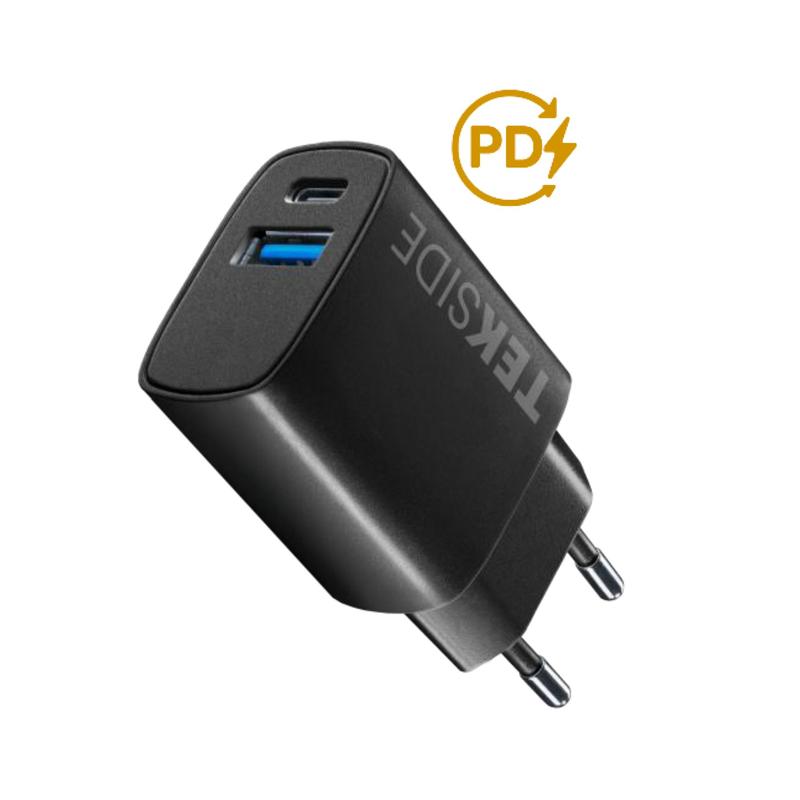 Tekside - Caricabatteria da rete 20W PD DUAL A+C - Nero
