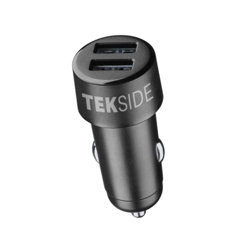 Tekside - Caricabatteria da auto Dual USB-A 10W - Nero