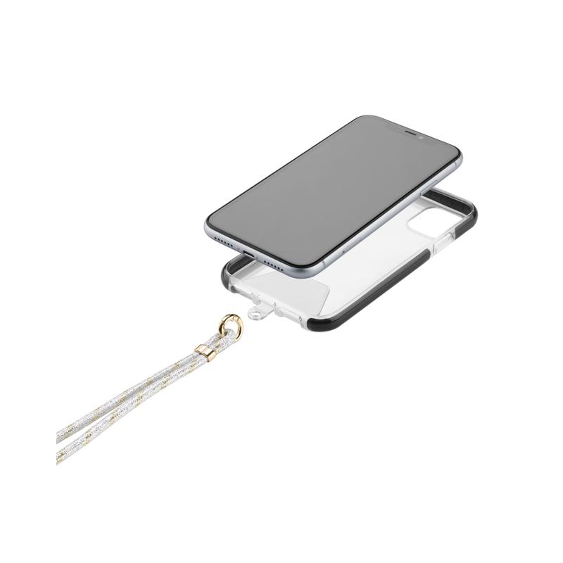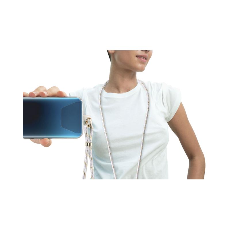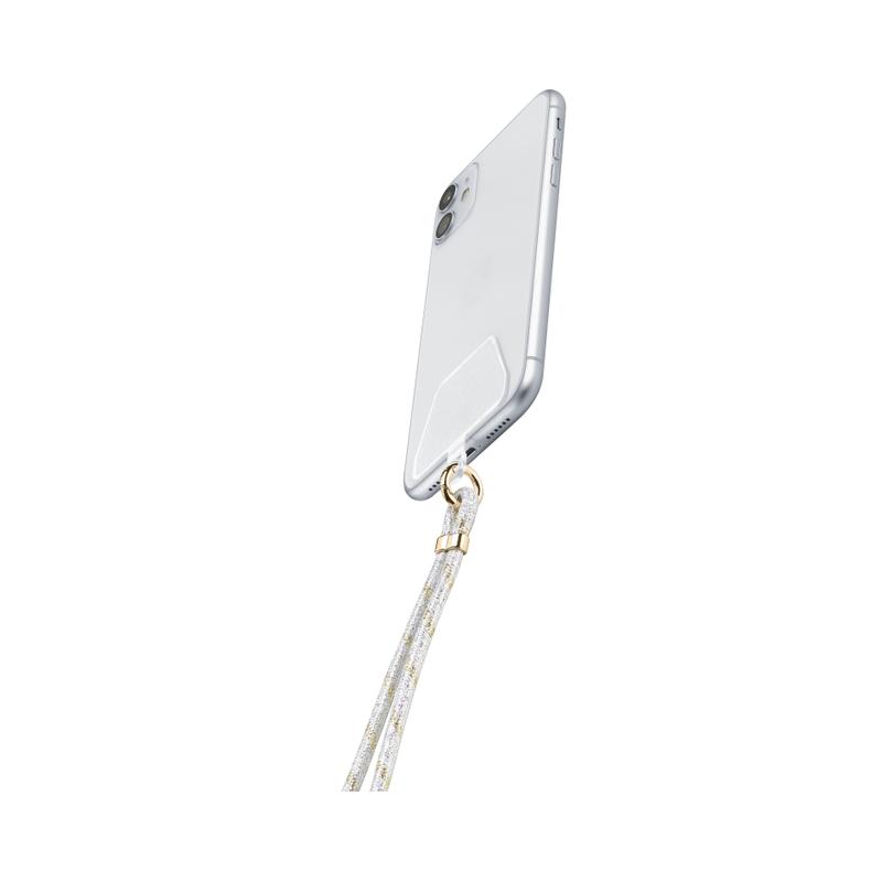 UNIVERSAL LACE è la soluzione universale per tutti gli smartphones e per tutte le tipologie di custodie, che consente di portare al collo o a tracolla il proprio smartphone e averlo sempre a portata di mano. Universal Lace si compone di un laccio in tessuto regolabile al quale è agganciata una linguetta in plastica trasparente da posizionare tra la custodia e lo smartphone. La linguetta adesiva può essere attaccata alla custodia o al retro del telefono e grazie alla colla epossidica si può staccare e riutilizzare più volte.