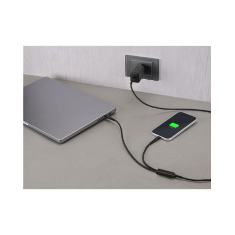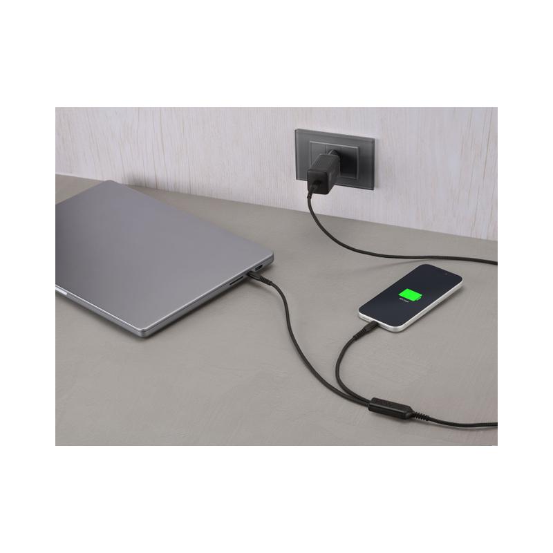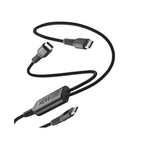 Twin Charge Cable è il cavo USB-C a doppia uscita progettato per offrire massima flessibilità e prestazioni elevate. Consente di ricaricare due dispositivi contemporaneamente con un unico cavo, distribuendo automaticamente la potenza in modo intelligente e sicuro. Quando utilizzato con un solo dispositivo, supporta fino a 140W di Power Delivery per una ricarica ultra-rapida. Il design intrecciato garantisce maggiore resistenza e durata nel tempo, mentre la lunghezza di 150 cm lo rende ideale per l’uso quotidiano, in viaggio e in ambienti di lavoro.