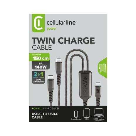 Cellularline - Twin Cable con doppio USB-C to USB-C 150 cm