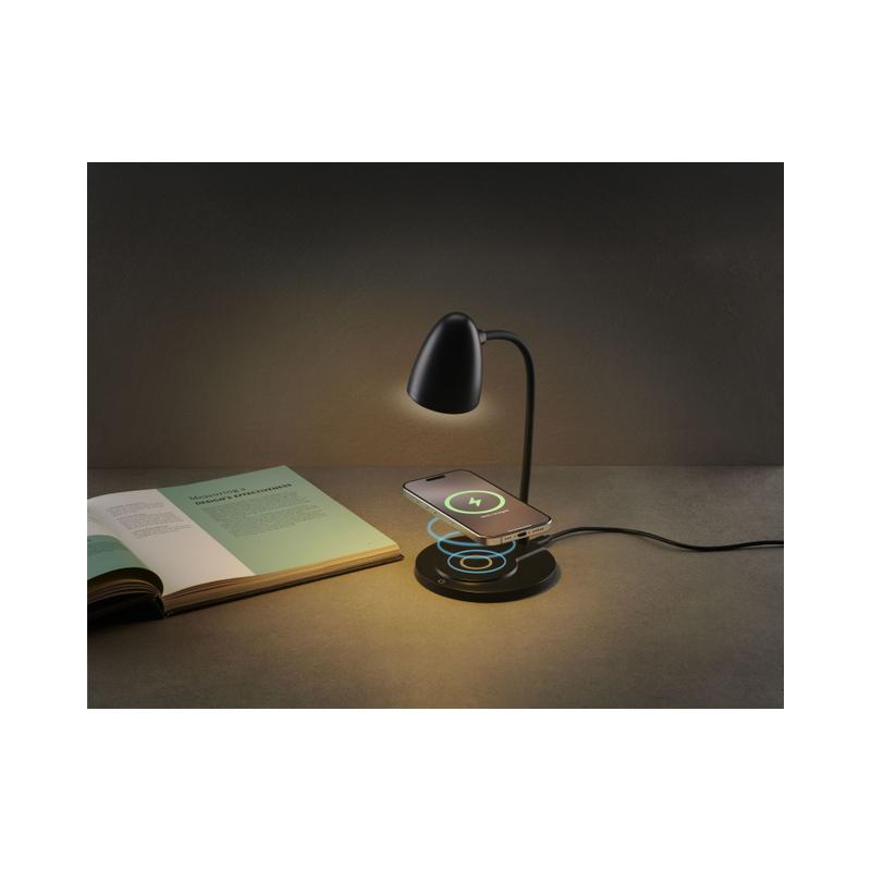 AURA è la lampada con ricarica wireless pensata per ampliare il portafoglio di soluzioni wireless dual-use, con un posizionamento competitivo ideale anche per attività promozionali. Integra una base di ricarica wireless fino a 15W per smartphone compatibili e 5W per auricolari wireless, eliminando i cavi dalla scrivania. Il design pieghevole, compatto e minimale la rende perfetta per diversi contesti – dall’ufficio agli ambienti domestici – mentre il controllo touch e le tre temperature di luce consentono di personalizzare l’illuminazione in base all’attività. La porta USB-C assicura una ricarica semplice e contemporanea della lampada.